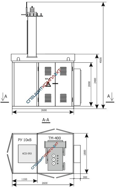 ВНИМАНИЕ! при установке дополнительной ячейки для заземления сборных шин ру-10кв ширина подстанции увеличивается на 450 миллиметров и составит 3000 миллиметров